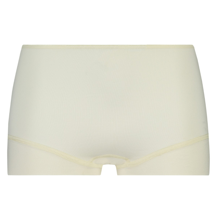 Een elegant en mooi elastisch shortje met een speciaal ontwikkelde pasvorm, zodat deze goed om de billen aansluit en niet omhoog kruipt. De taille is afgewerkt met een zacht vouwbiesje met een glansbaan. Het shortje heeft geen hinderlijke voor- en achternaad.