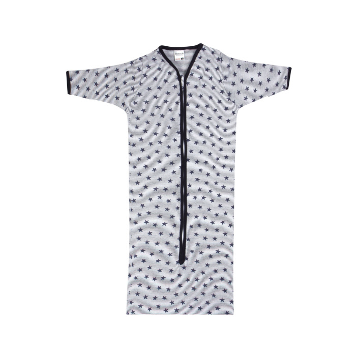 Slaapzak zonder zijnaden gemaakt van een mooie zachte fijnrib met leuke print. De hals en mouwen zijn afgezet met een smal boordje. De bovenzijde heeft extra bescherming voor de rits. De slaapzakjes zijn voorzien van handige anti-krab wantjes. Ideaal voor baby's die zichzelf krabben in hun slaap.
