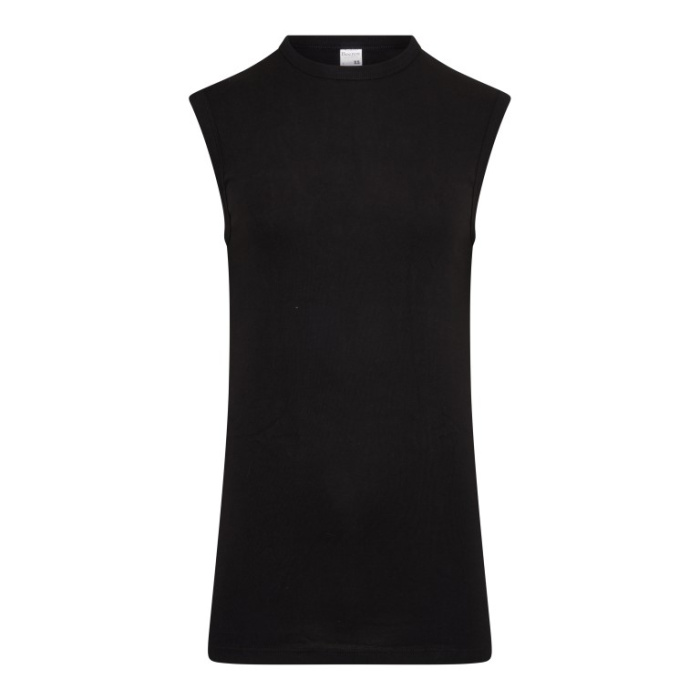 Aansluitend heren mouwloos shirt extra lang zonder zijnaden gemaakt van een fijnrib katoen. De Hals en armsgaten zijn afgezet met boord. Dit shirt is extra lang. 100% katoen, 100% comfort. Dit artikel kan op 60ºC gewassen worden.