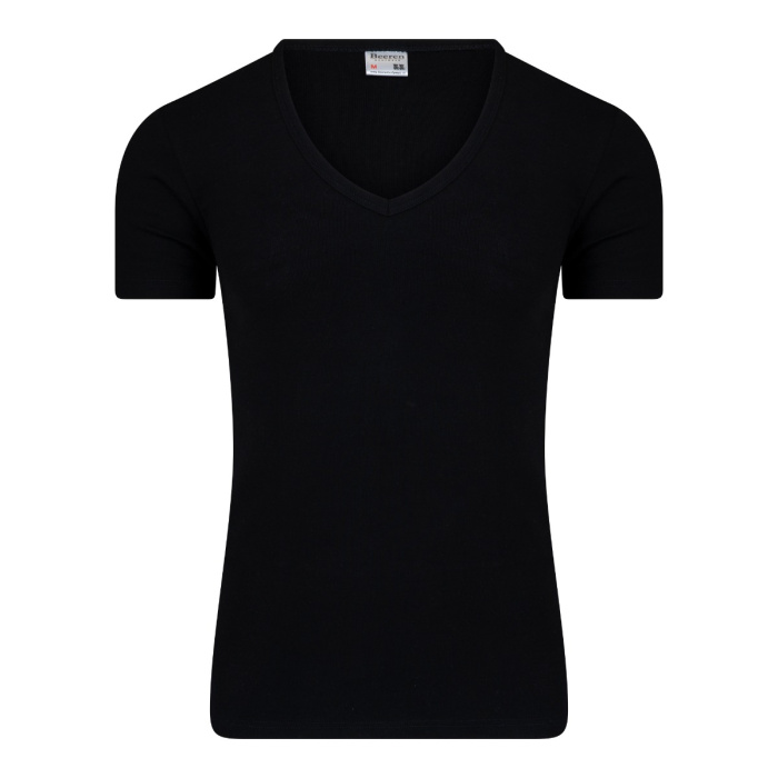 Heren T-shirt met diepe V-hals zonder zijnaden gemaakt van een fijnrib. De hals & armsgaten zijn afgezet met boord. Wanneer men dit shirt onder een overhemd draagt, ziet men geen boordje. 100% katoen, 100% comfort. Dit artikel kan op 60ºC gewassen worden.