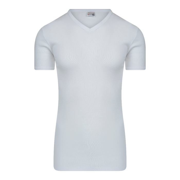 Aansluitend heren T-shirt met V-hals zonder zijnaden gemaakt van een fijnrib. De hals & armsgaten zijn afgezet met boord. Dit T-shirt is extra lang! 100% katoen, 100% comfort. Dit artikel kan op 60 graden gewassen worden.