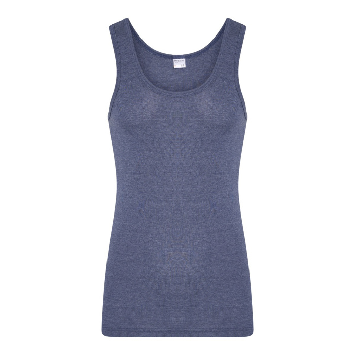 Heren singlet gemaakt van een fijnrib. De hals & armsgaten zijn afgezet met boord. De stof heeft een jeans effect.