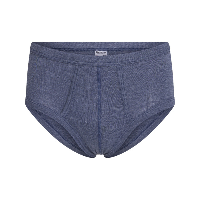 Klassieke heren slip met gulp gemaakt van een fijnrib. Zowel de pijpen als de taille zijn afgezet met boord met daarin een elastiek. De stof geeft een beetje een jeans effect.