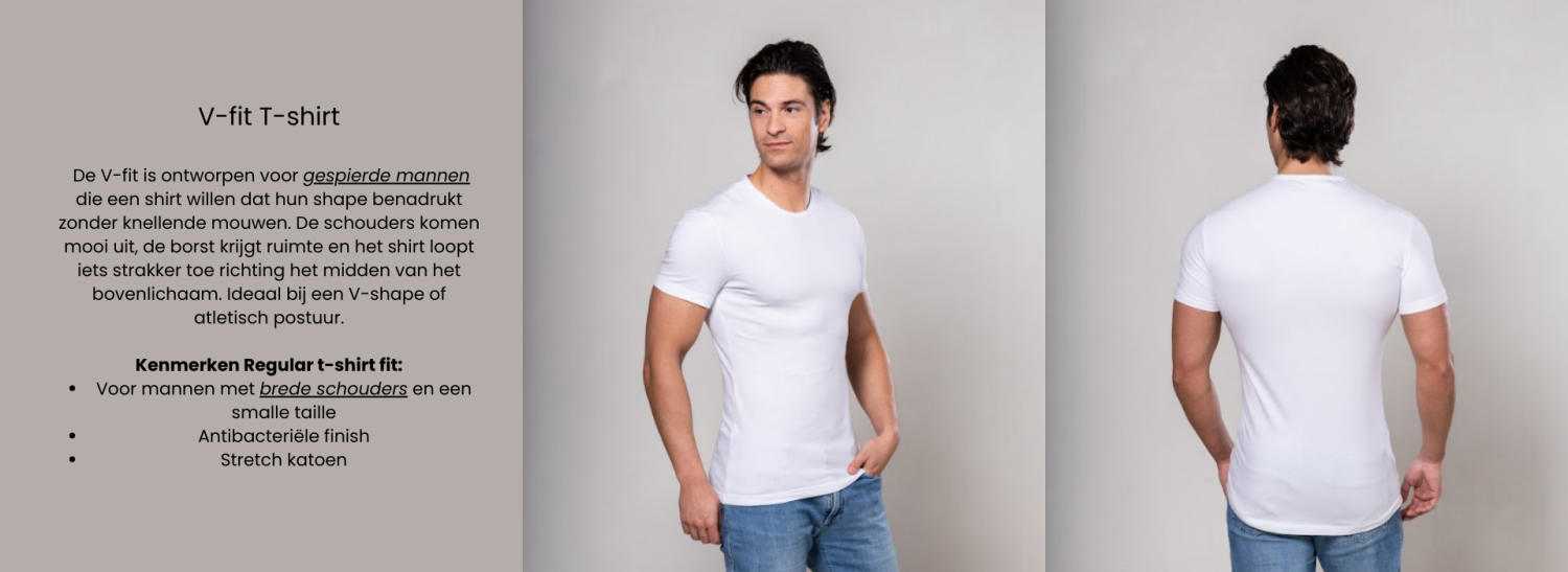 Een T-shirt lijkt misschien een basic item, maar de fit bepaalt hoe jouw outfit eruitziet en aanvoelt, van de manier waarop het je schouders volgt tot hoe het je lengte benadrukt. Daarom is het fijn om te weten welke fit bij jouw lichaam past. In deze blog nemen we je mee in de vier fits: O, V, Regular en Extra Long. We leggen je uit hoe elk shirt valt, wat de kenmerken zijn en voor wie het geschikt is. Zo krijg je een duidelijk beeld van de verschillen en wordt kiezen een stuk makkelijker. Welk lichaamstype jij ook hebt, wij hebben een passende fit!